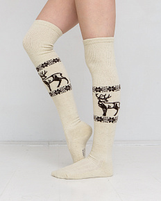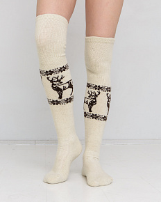 Теплые чулки из 100% шерсти с рисунком серо-бежевые