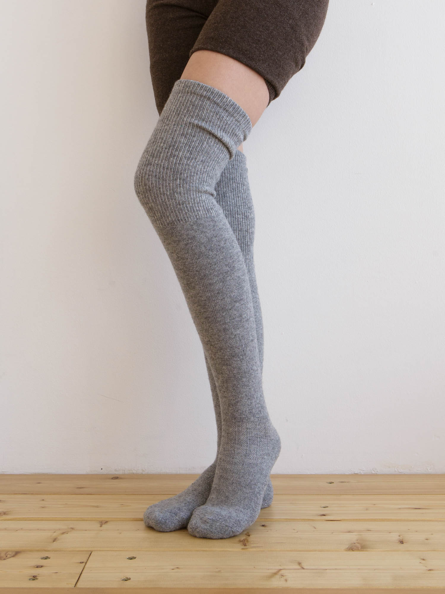 Теплые чулки из монгольской шерсти серые