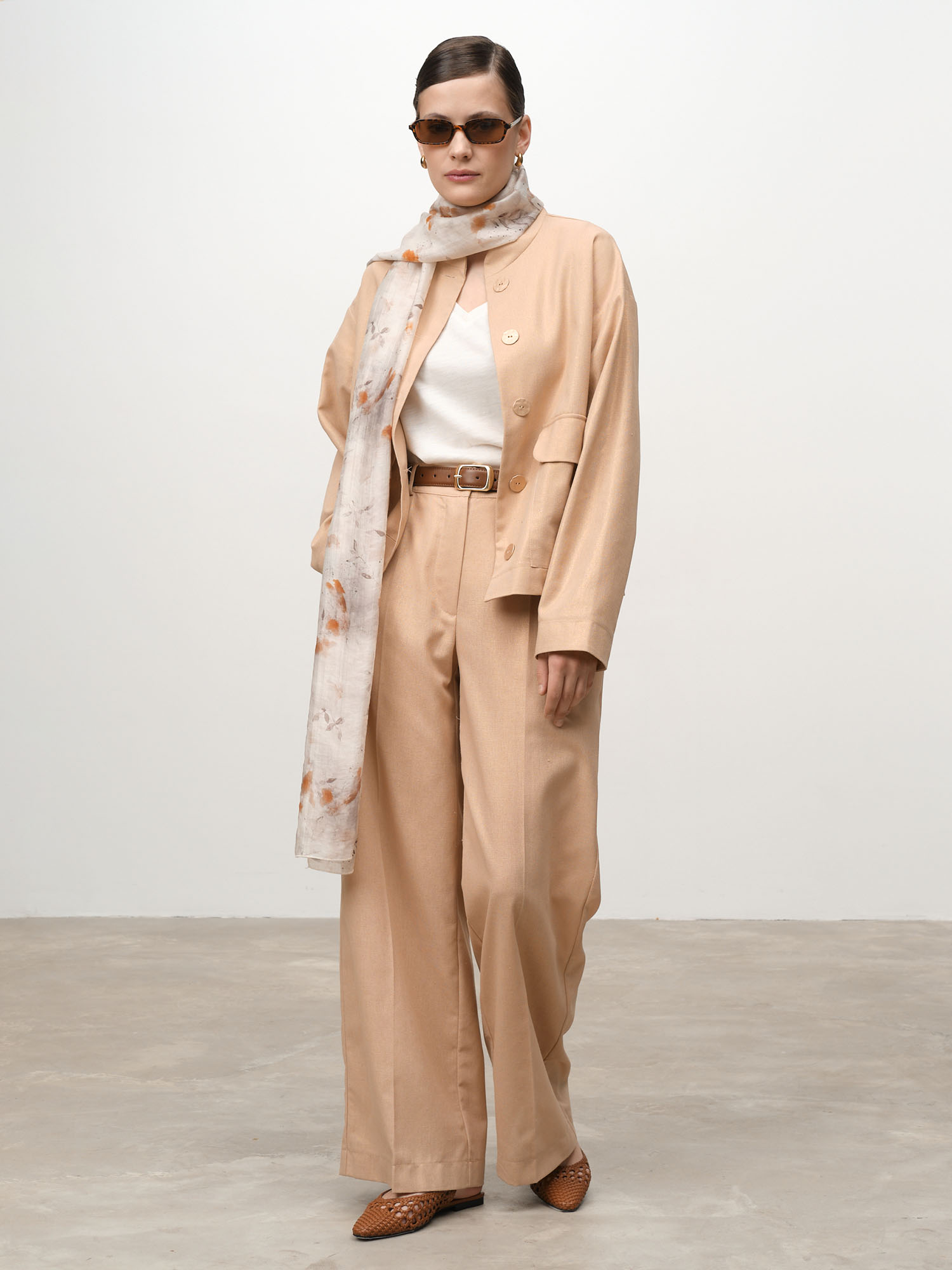 Идеально сочетается с брюками или юбками из льна, а также с базовыми топами и платьями. Подходит для повседневных и городских образов.