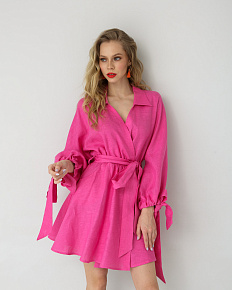 Платье льняное фуксия 26004