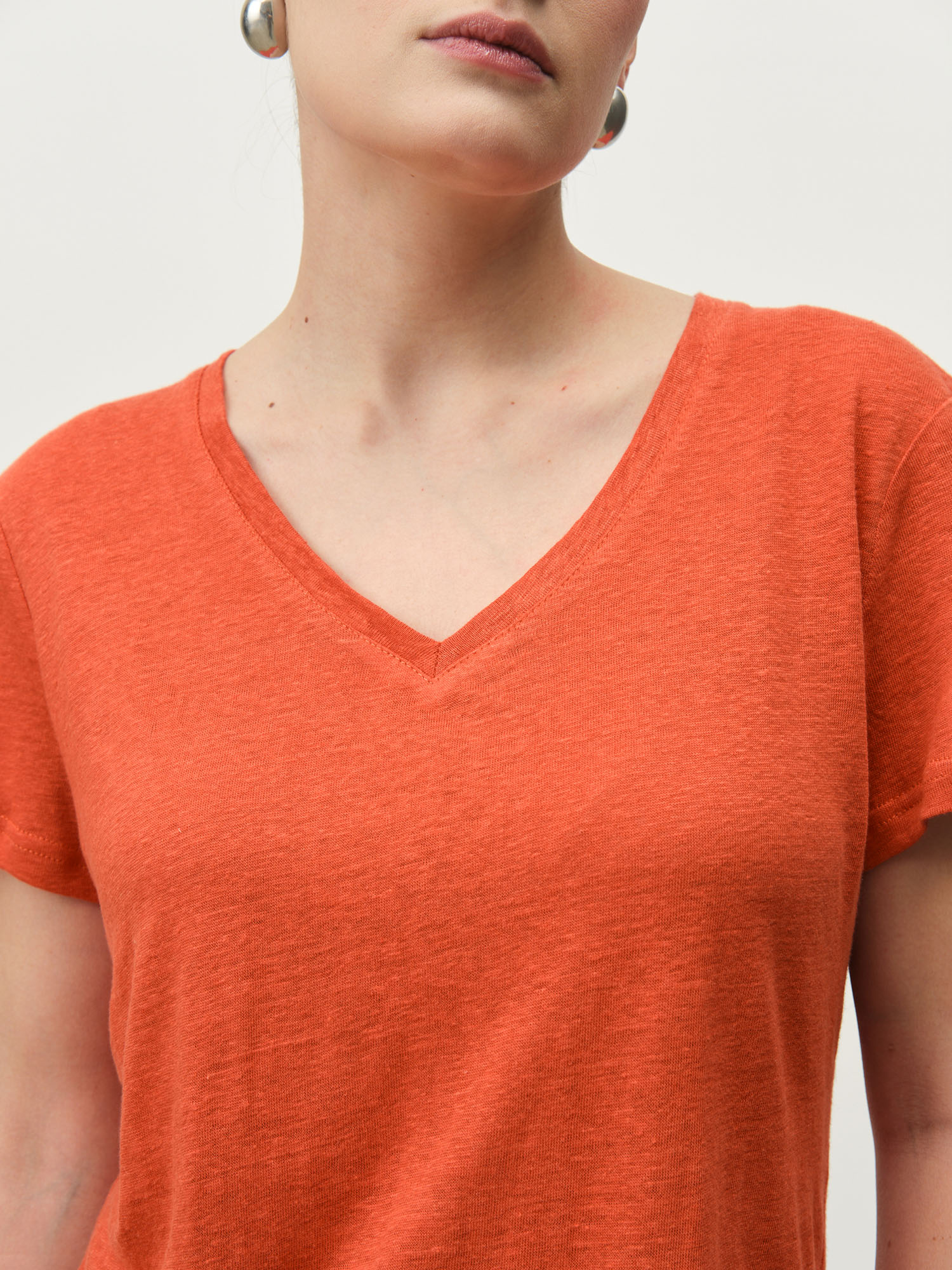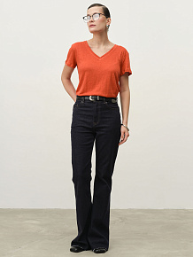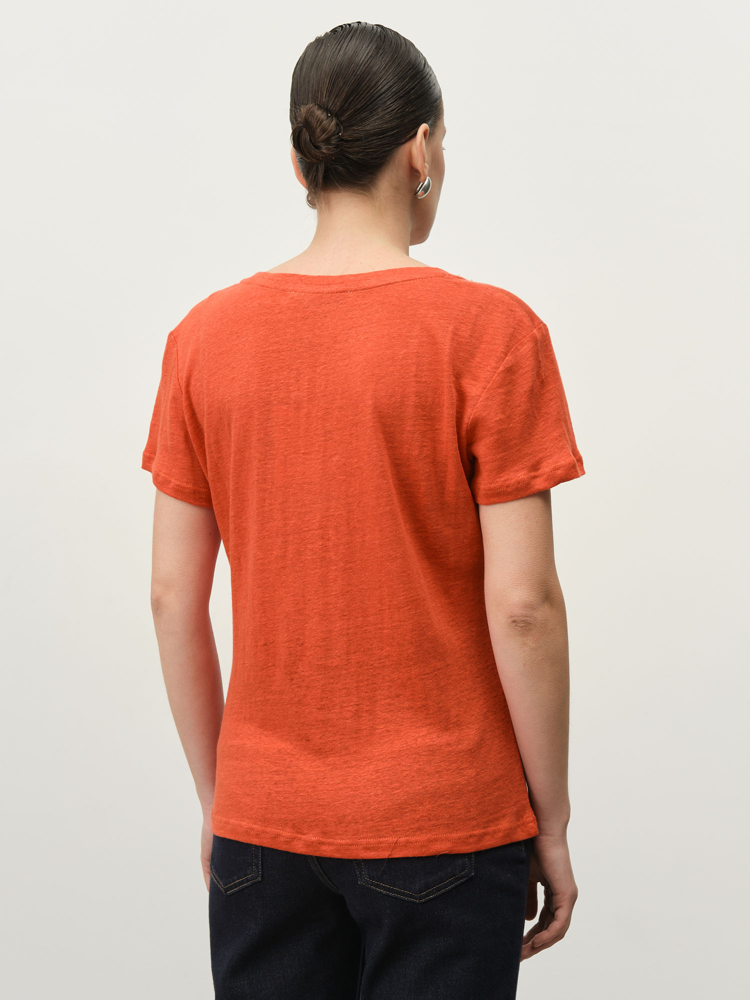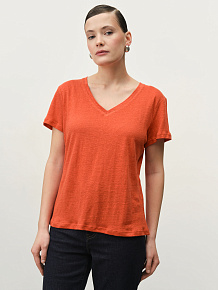Женская футболка из льна — лёгкая и дышащая модель с аккуратным силуэтом, идеально подходящая для тёплого сезона. Обеспечивает комфорт и придаёт образу свежесть.