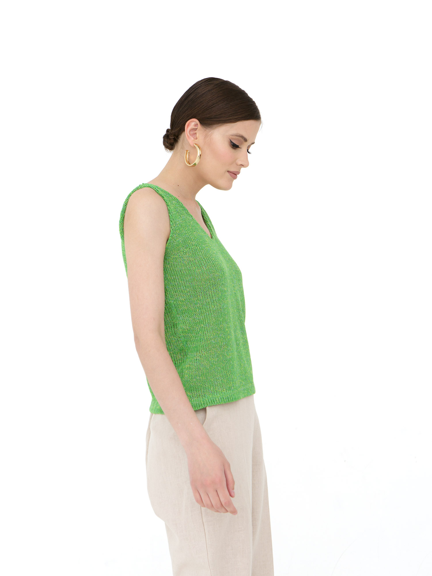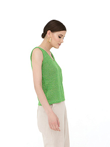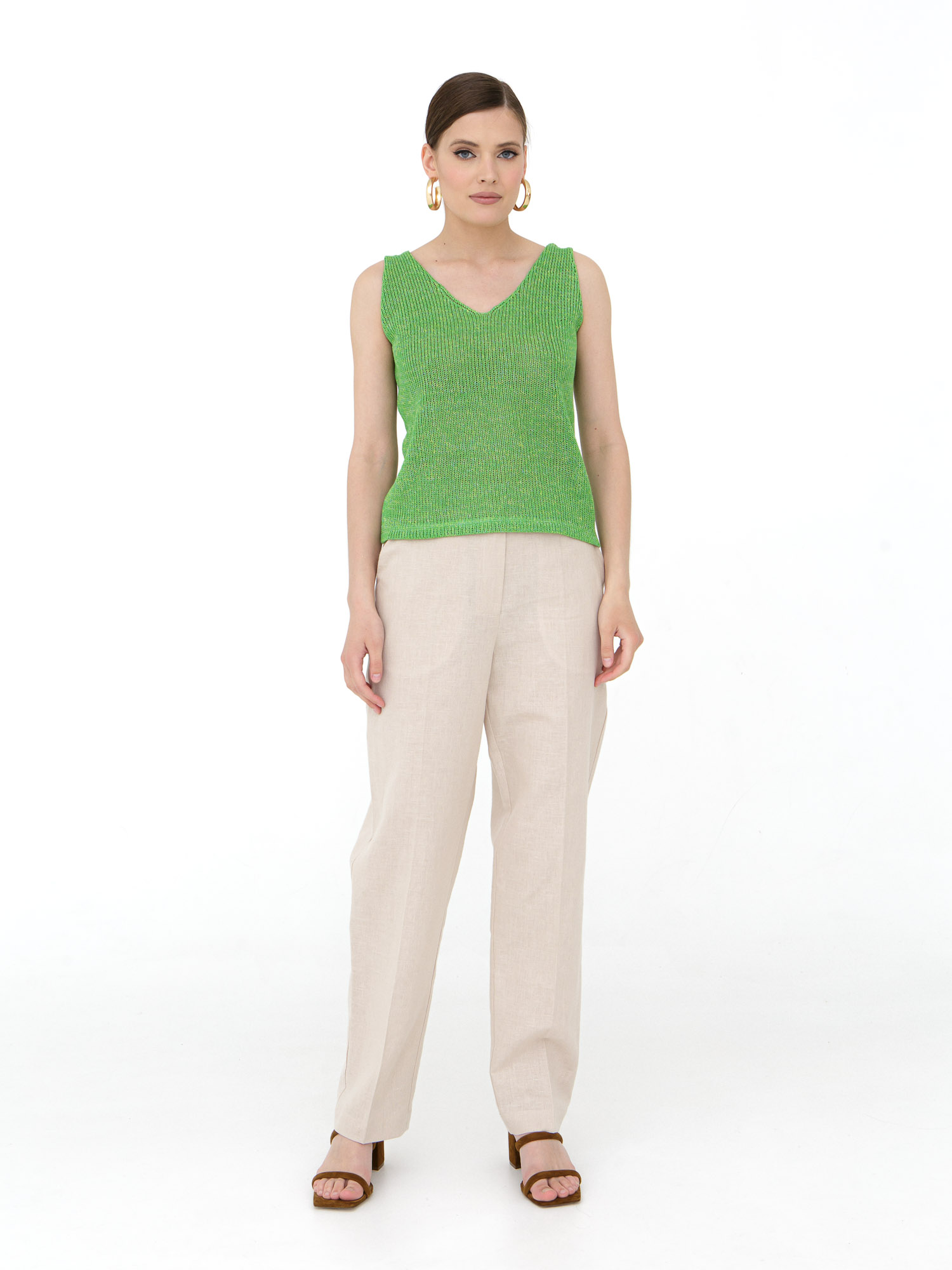 Женский льняной джемпер в зеленом цвете — идеальный выбор для теплого сезона. Изготовлен из 100% натурального льна, этот джемпер отличается легкостью и воздухопроницаемостью, обеспечивая вам комфорт даже в самые жаркие дни.  Он подходит как для работы, так и для отдыха на природе или прогулок по городу. Этот джемпер станет незаменимым элементом вашего гардероба, даря комфорт и стиль в любой ситуации.