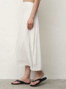 Эластичный пояс для комфортной посадки, легкая струящаяся ткань, аккуратные швы, фактурная поверхность.