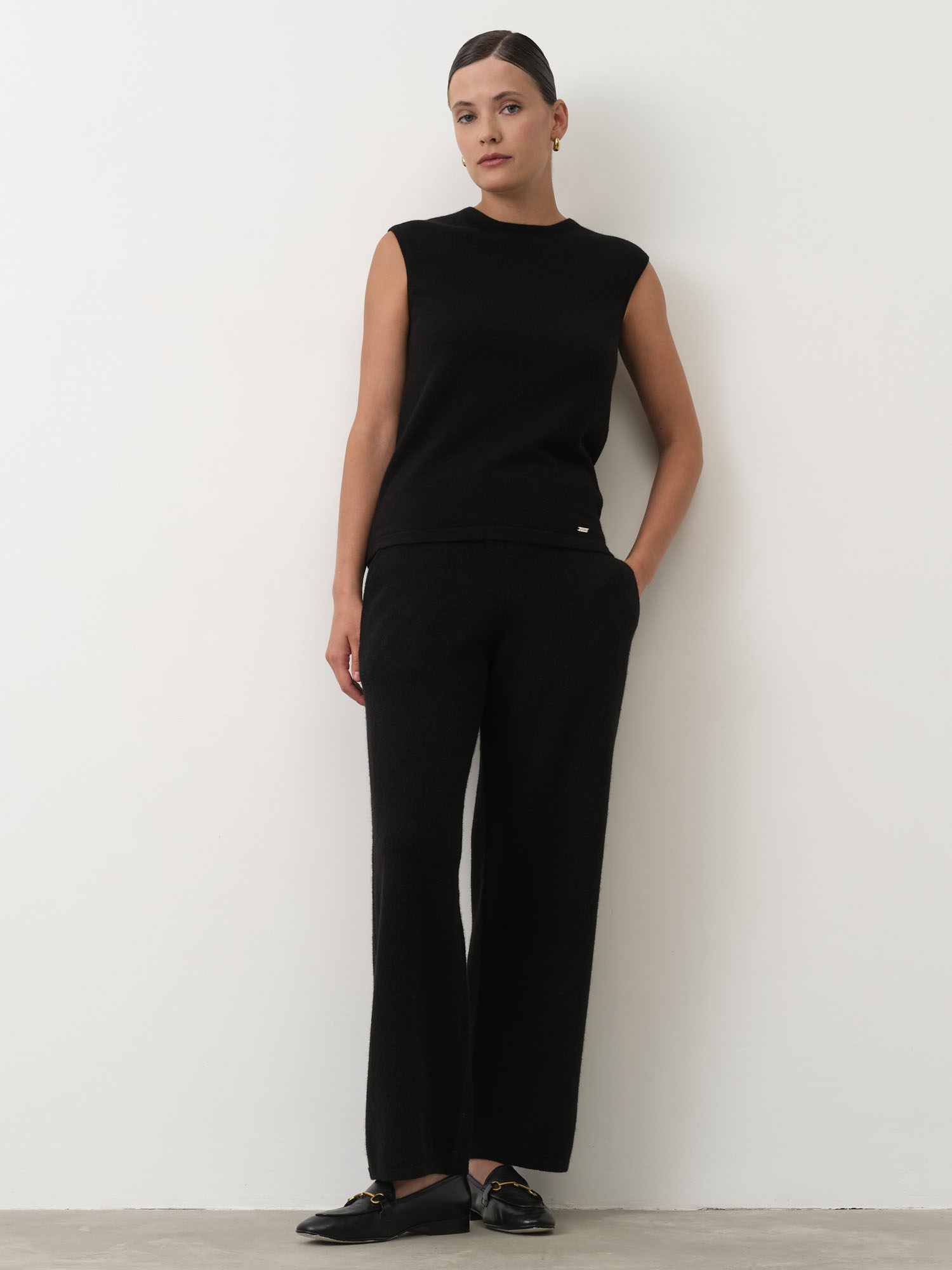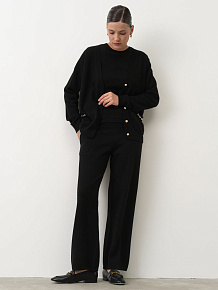 Брюки отлично сочетаются с джемперами, кардиганами и водолазками. Подходят для создания уютных повседневных образов, а также комплектов в стиле casual. Гармонично смотрятся с лоферами, ботинками или кроссовками.