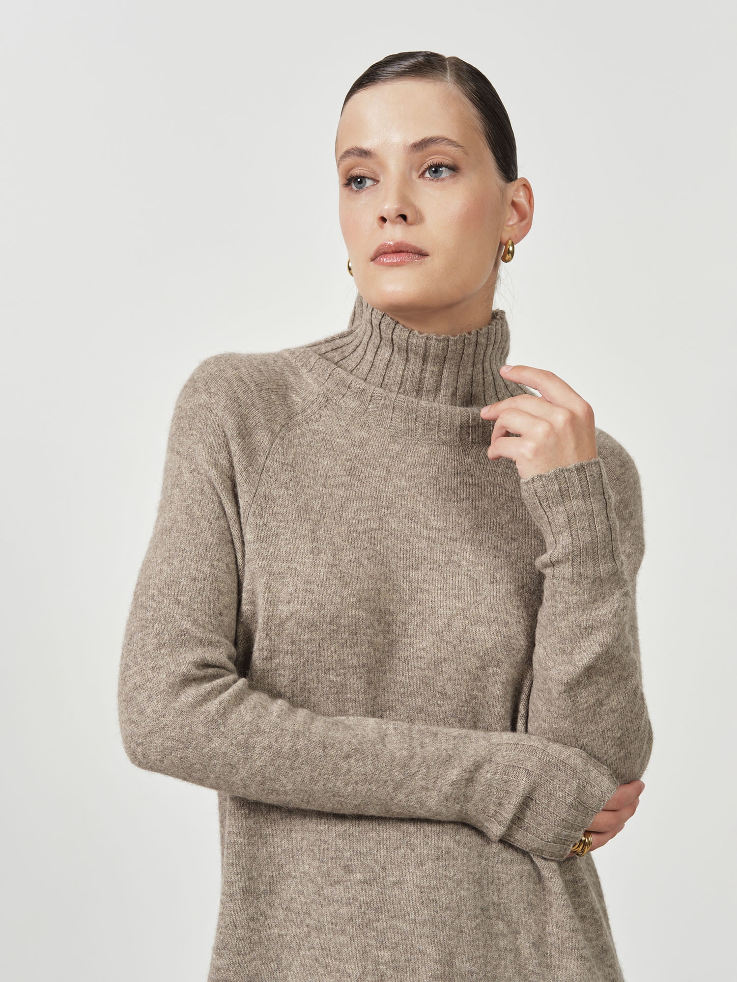 Объёмный воротник-гольф для дополнительного тепла, аккуратная трикотажная вязка, удлинённая длина и боковые разрезы для свободы движений. Качественная обработка краёв обеспечивает долговечность.