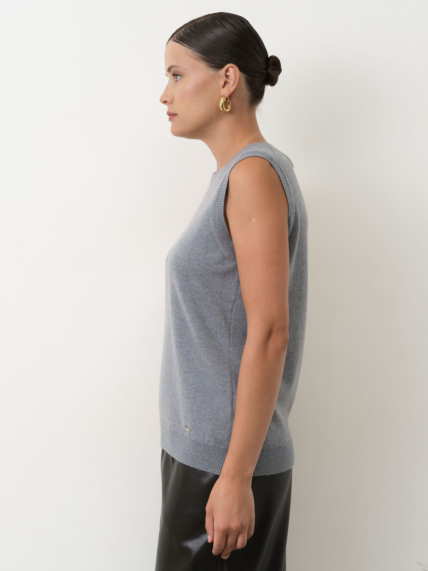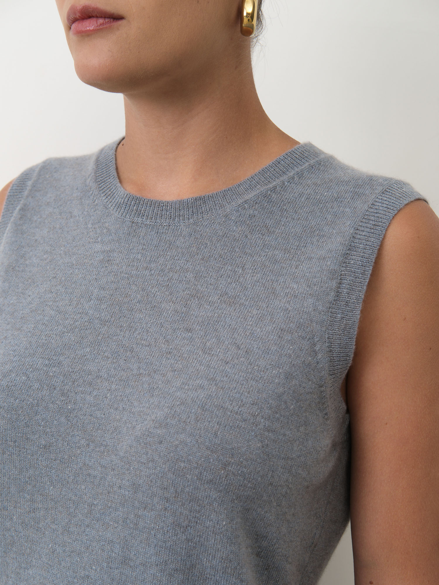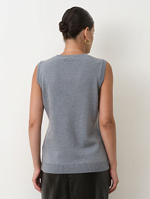 Модель выполнена без рукавов с аккуратной круглой горловиной и гладкой вязкой. Минималистичный крой подчёркивает благородную текстуру кашемира и создаёт современный универсальный силуэт. Нижний край изделия оформлен эластичной вязкой, что помогает сохранять форму.